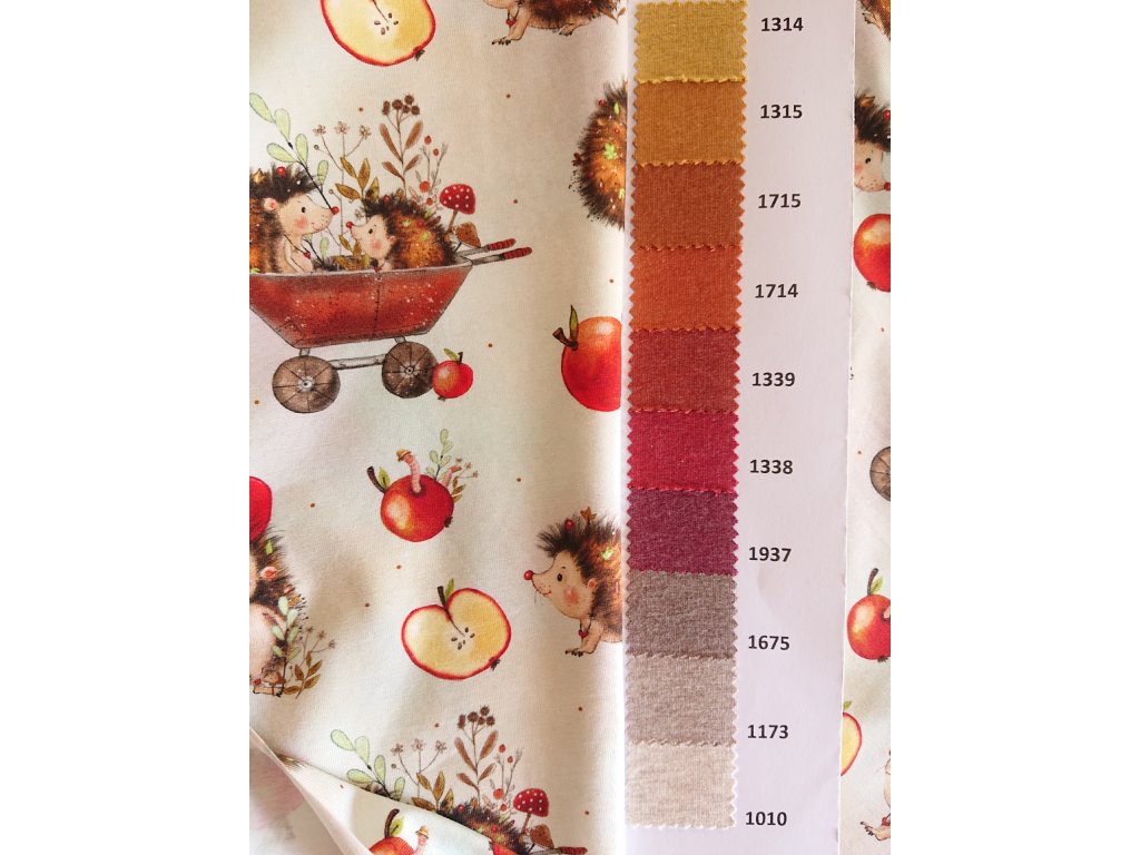 Bavlněný úplet "Puffin" 210g - Ježci s jablíčkem
