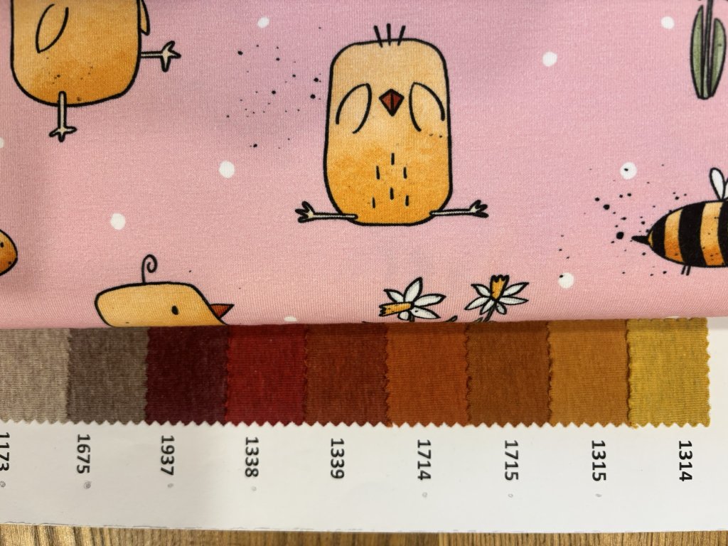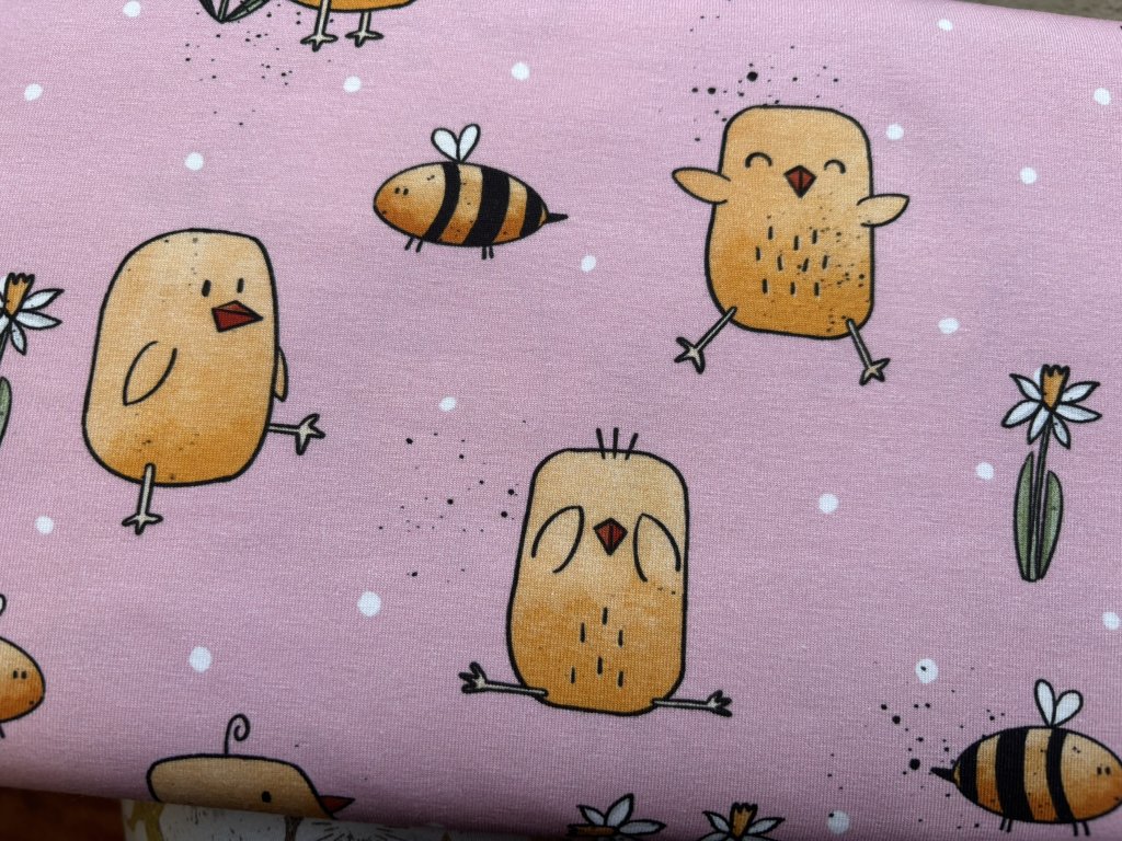 Bavlněný úplet "Puffin" 210g - Kuřátka pro holky