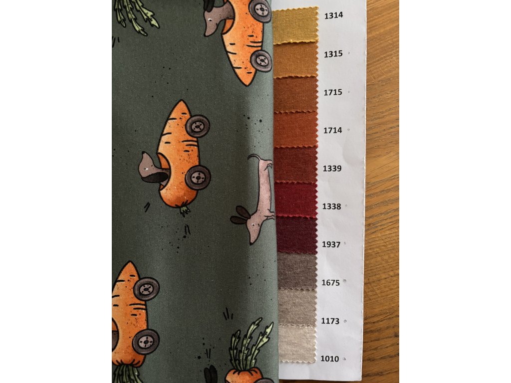 Bavlněný úplet "Puffin" 210g - Pejsek v mrkvi