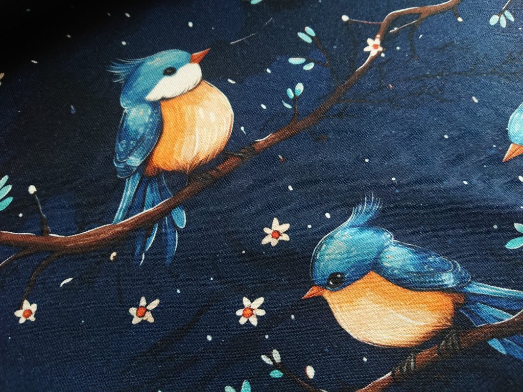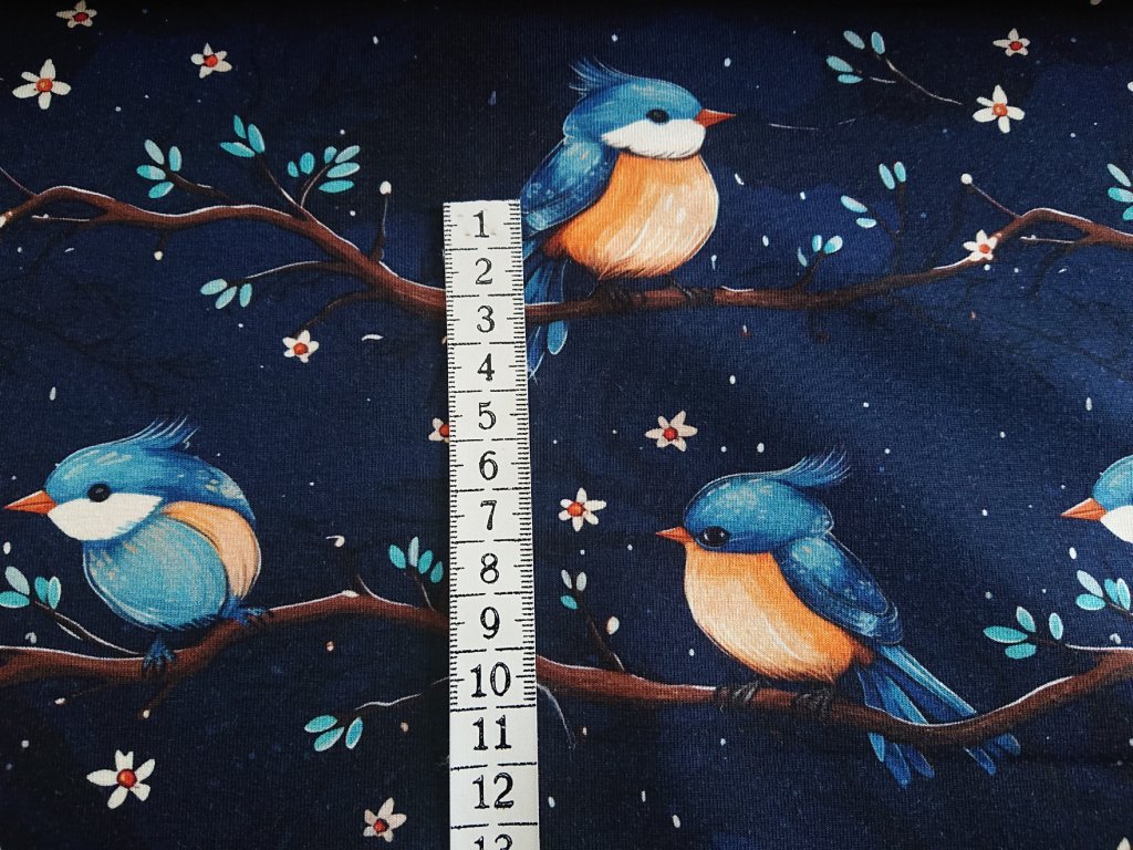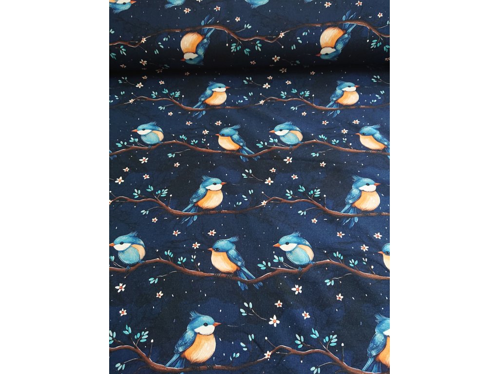 Bavlněný úplet "Puffin" 210g - Ptáčci v zimě