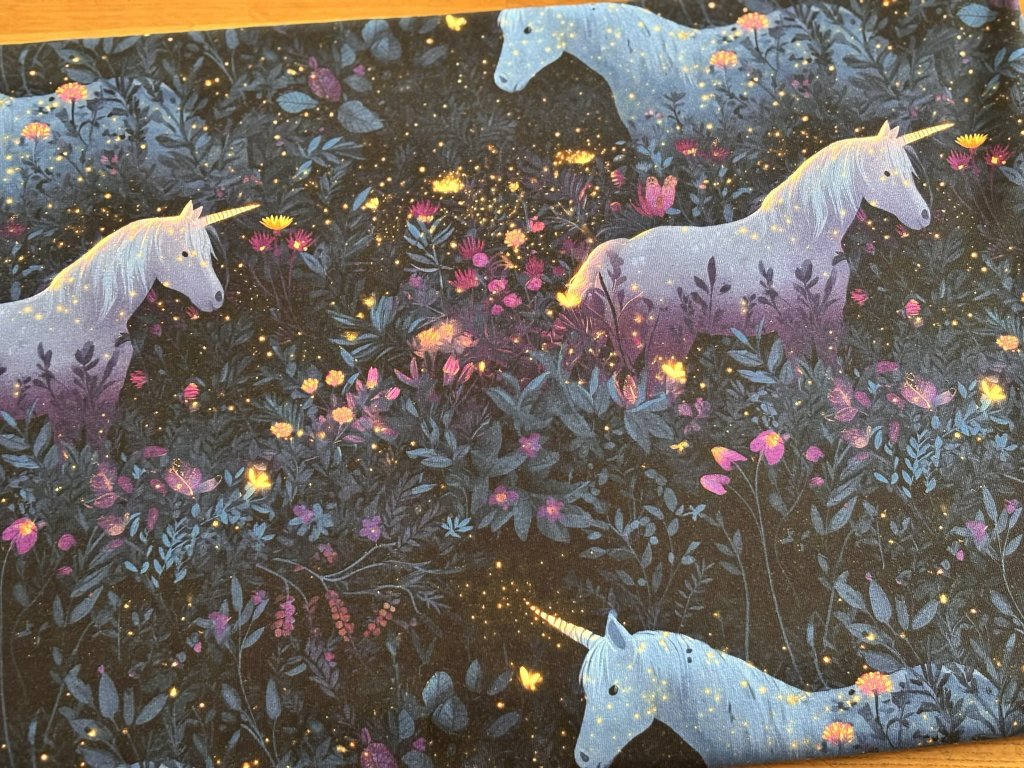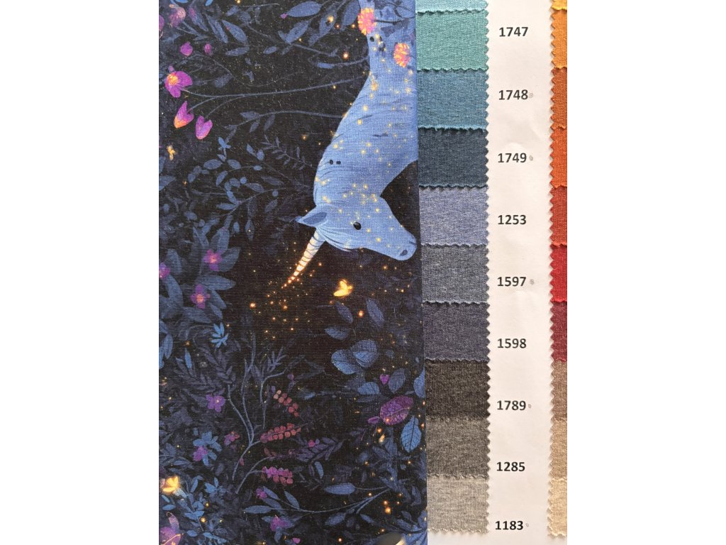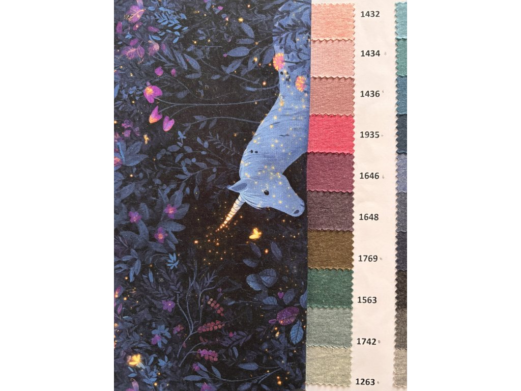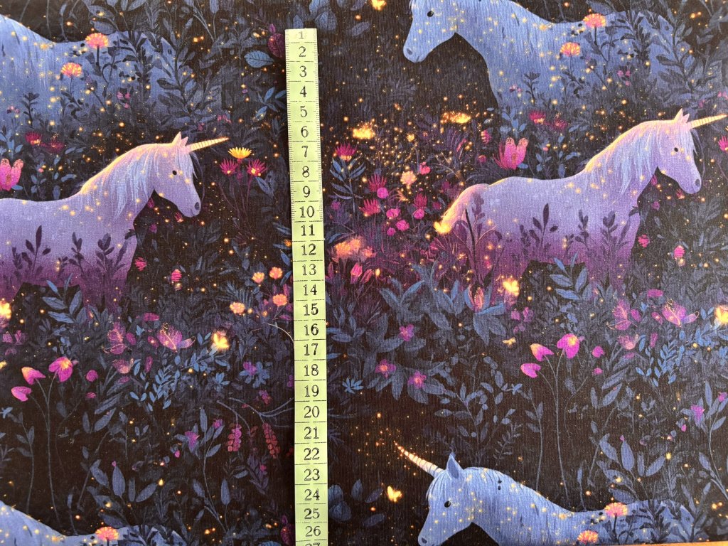 Bavlněný úplet "Puffin" 210g - Zářiví jednorožci