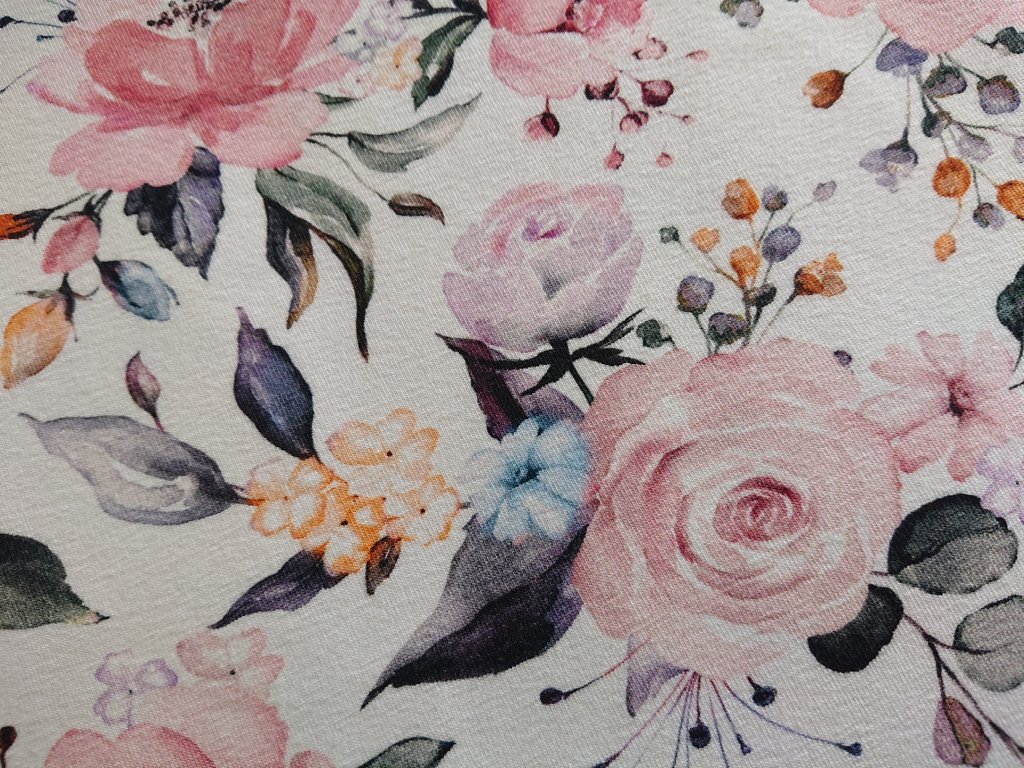 Bavlněný úplet COLORS růže na bílé 90cm