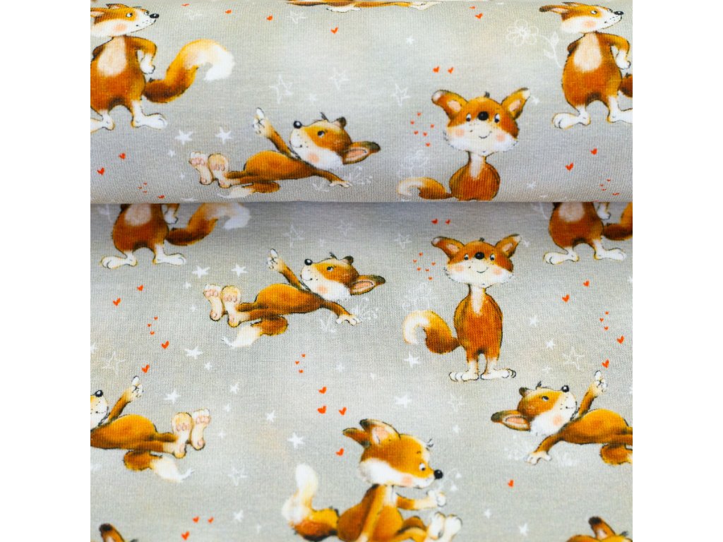 Bavlněný úplet SWEN Lathi Lištičky na šedé