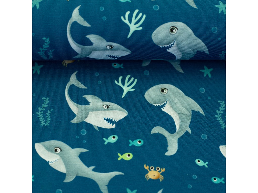 Bavlněný úplet SWEN žraloci kolekce Ahoi!