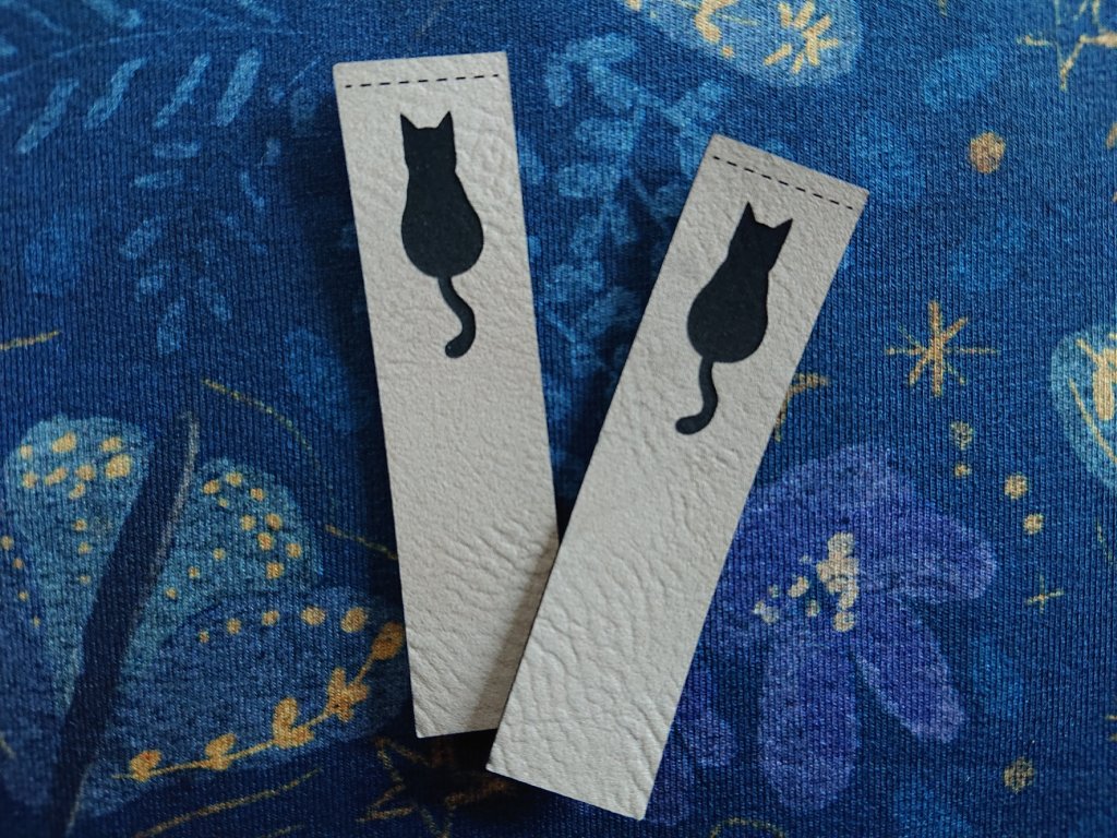Varianta: Kočka silueta na lem - koženka smetanová 15x60mm