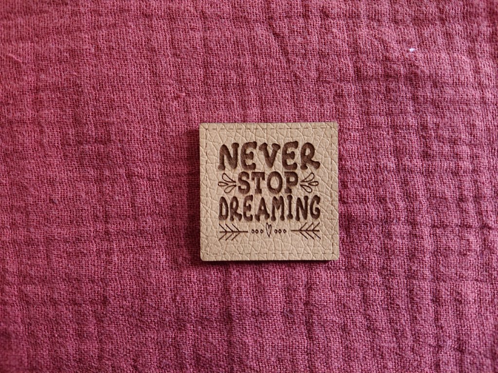 Varianta: Never stop dreaming - koženka písková 30x30mm