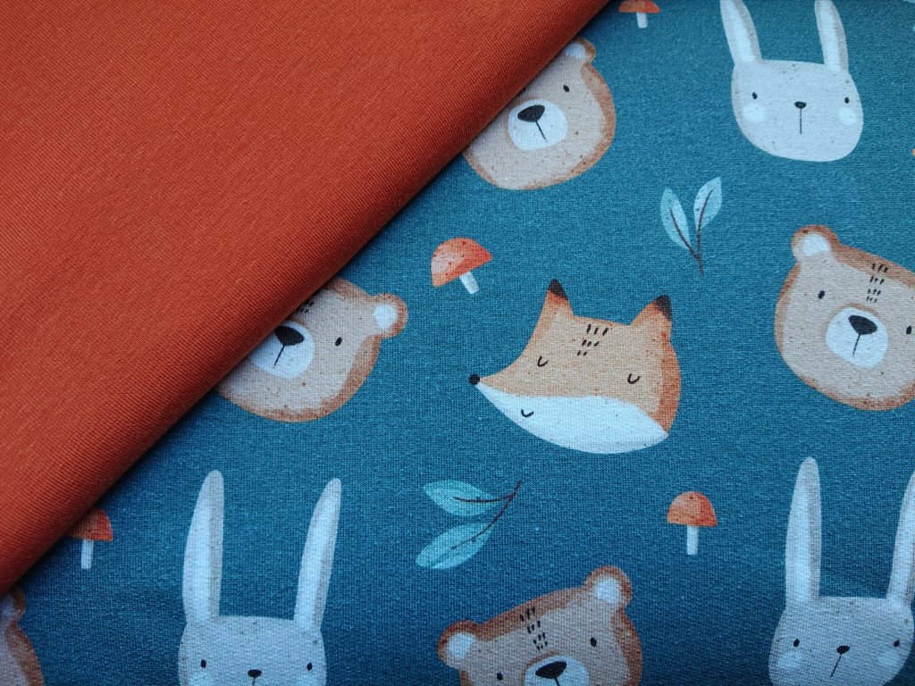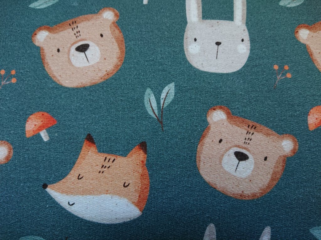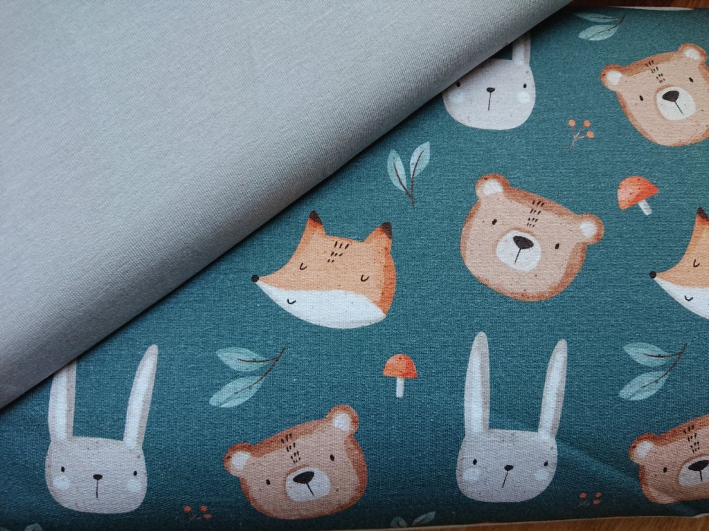 Teplákovina french terry - Zvířátka na petrolejové