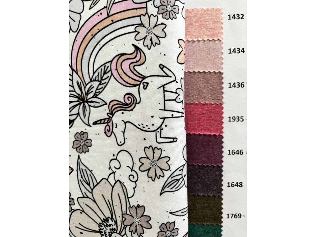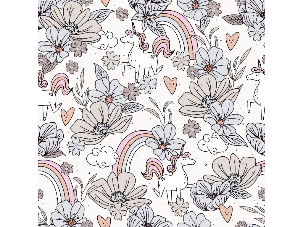 Teplákovina nepočesaná "Puffin" 250g - Jednorožci