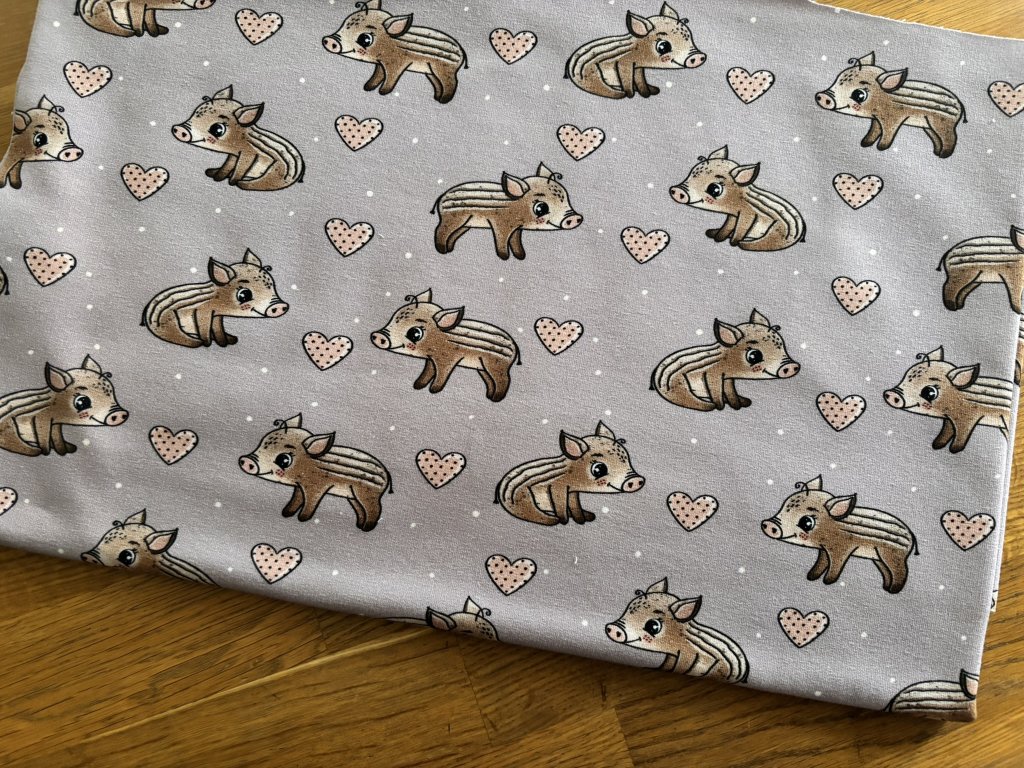 Neskutečně povedený lila podklad a roztomilá prasátka.